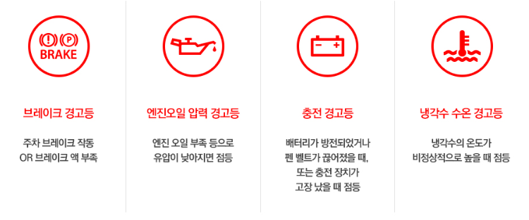 2. 필수적으로 알아야하는 경고등(빨간색)